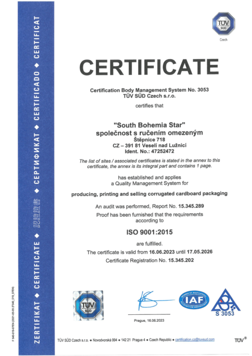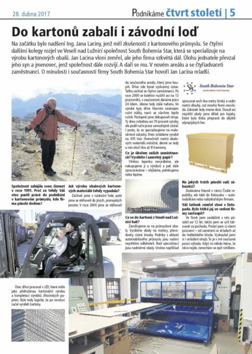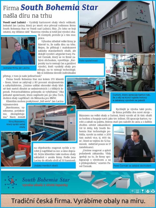 South Bohemia Star begann seine Tätigkeit im Jahr 1991. Ing Jan Lacina, der mit seiner mehr als 10-jährigen Erfahrung in der Kartonindustrie ein rein tschechisches Unternehmen gründete, das Verpackungen aus Wellpappe herstellt.
